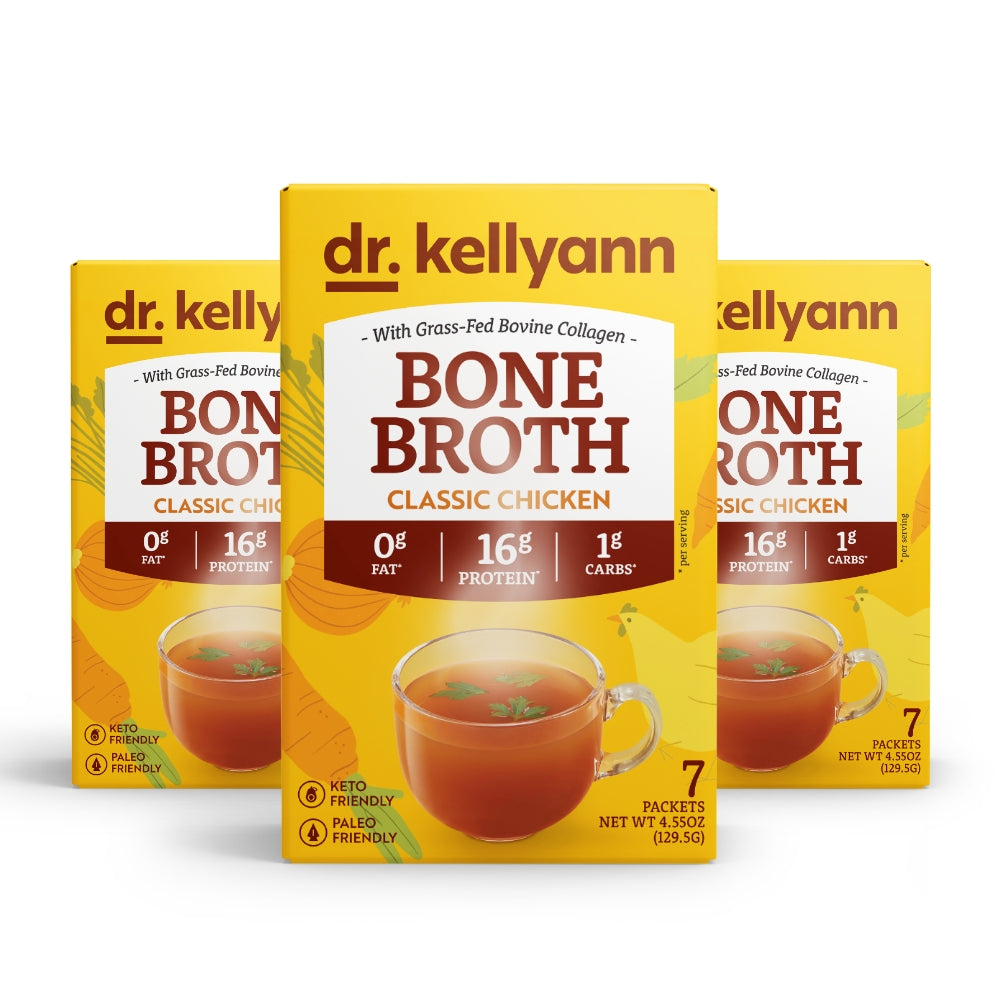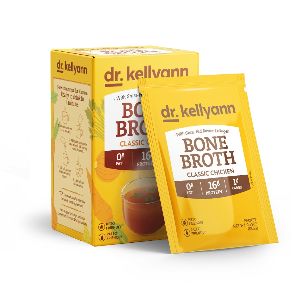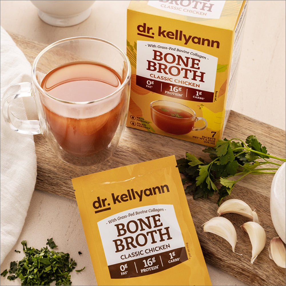 Dr. Kellyann’s Bone Broth is bursting with collagen-rich protein, nourishing nutrients, and satisfying flavor — all in 7 convenient single-serve packets.