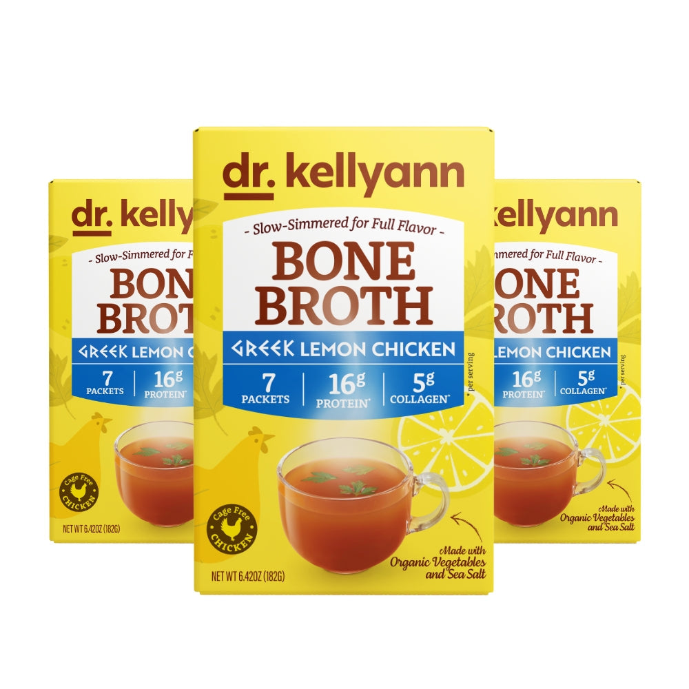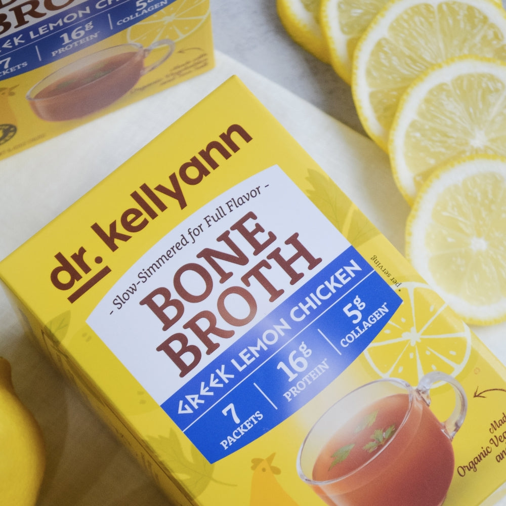 Dr. Kellyann’s Greek Lemon Chicken Bone Broth is light and citrusy, with a kiss of Mediterranean herbs. You’ll love the bold, tangy flavor that adds a delicious complement to the rich chicken flavor.
