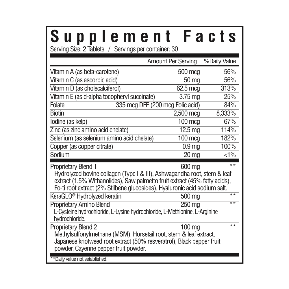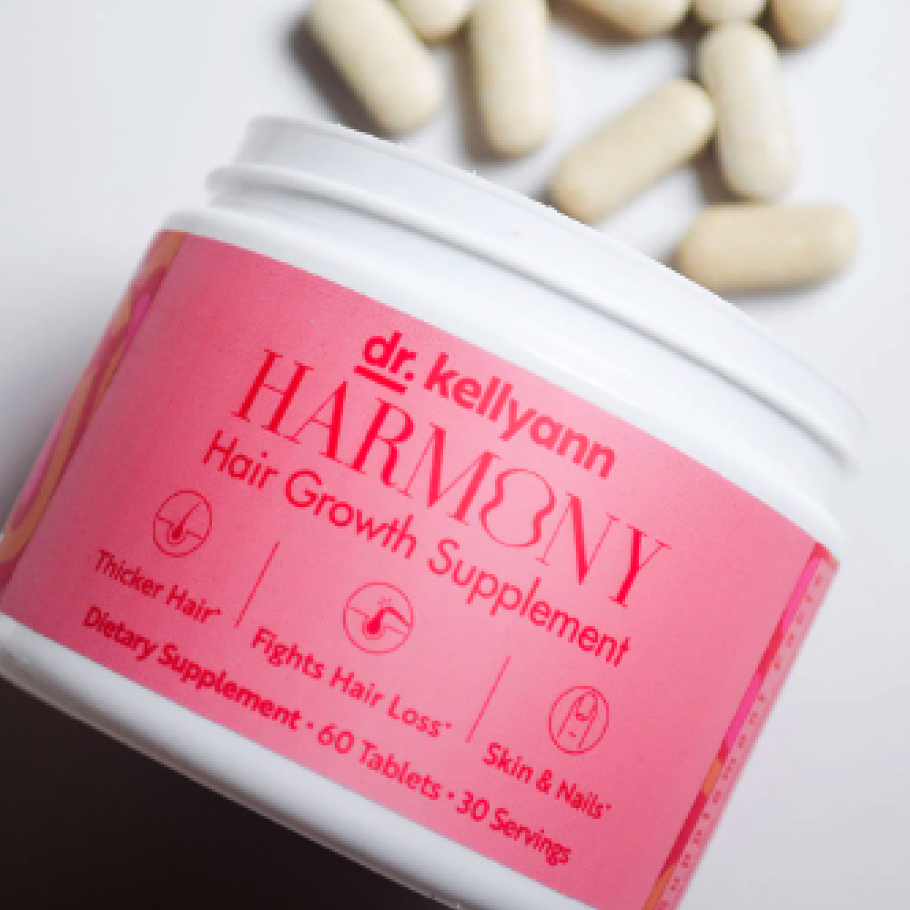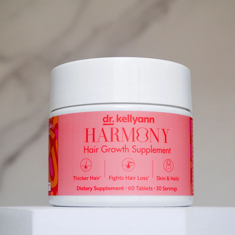 Dr. Kellyann’s Harmony Hair Growth is a complete beauty-from-within formula that targets the root causes of thinning hair while also nourishing nails and skin. This powerful blend combines vitamins, minerals, collagen, KeraGLO™ hydrolyzed keratin, and amino acids to fortify strands from within, while herbs like saw palmetto, Fo-ti, and ashwagandha help combat hair loss, stress, and hormone-related imbalances. Plant extracts such as horsetail and cayenne further promote circulation and nutrient delivery to the scalp, resulting in stronger, fuller, shinier hair—with the added bonus of healthier nails and more radiant skin.