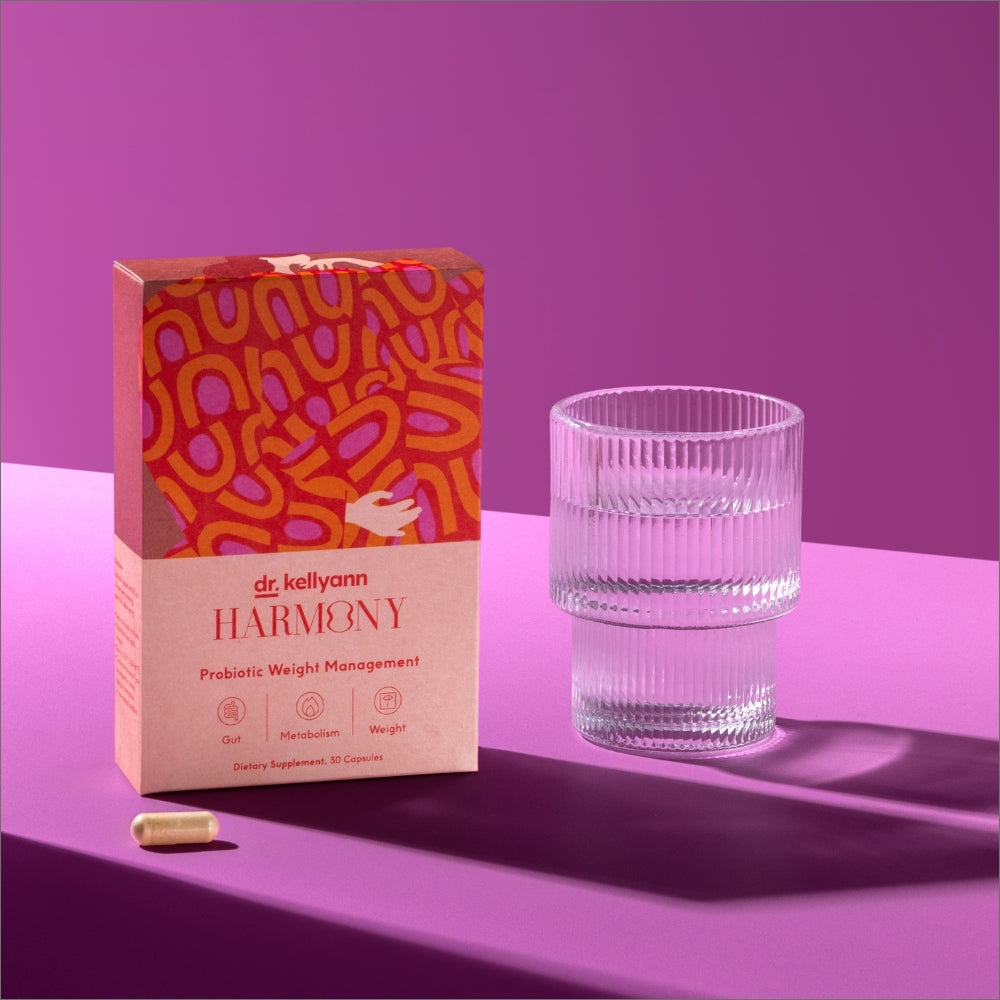 Dr. Kellyann’s Harmony Probiotic Weight Management is a daily prebiotic + probiotic capsule designed to help you look and feel your best. Made with clinically proven, biologically harmonious ingredients, this revolutionary formula combines 14 powerful probiotic strains, a potent blend of B vitamins, and an herbal prebiotic to help balance your gut microbiome, promote visceral fat reduction, and slim unwanted inches from your waist and hips.