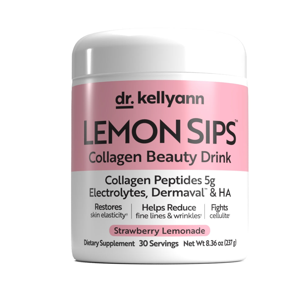 Dr. Kellyann’s Lemon Sips - Strawberry Lemonade is sweet, tart perfection that tastes like summer in a glass. This sugar-free, non-GMO, citrusy-delicious drink helps detoxify the body, hydrate from within, and nourish your cells. Say goodbye to cellulite and hello to smooth, radiant skin!