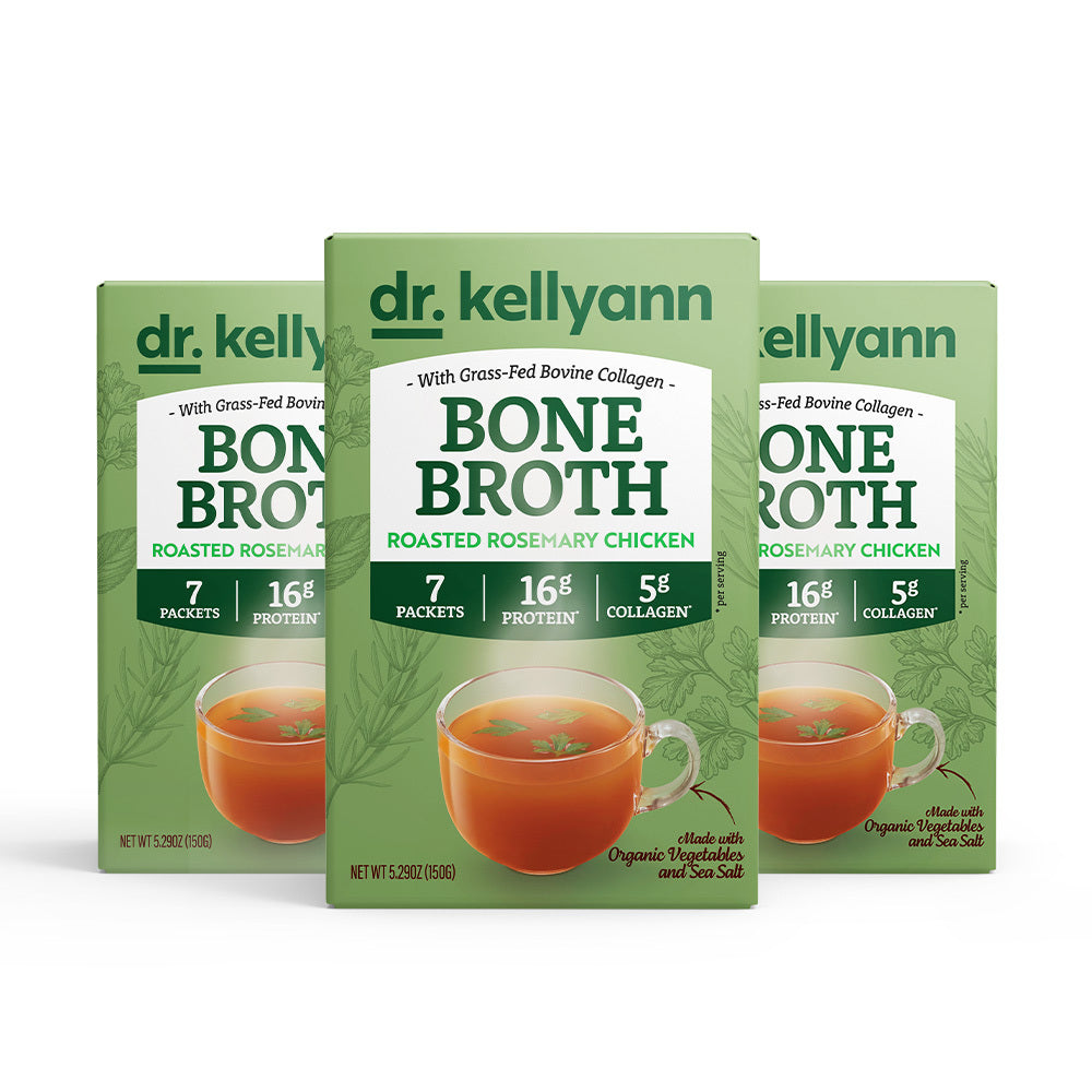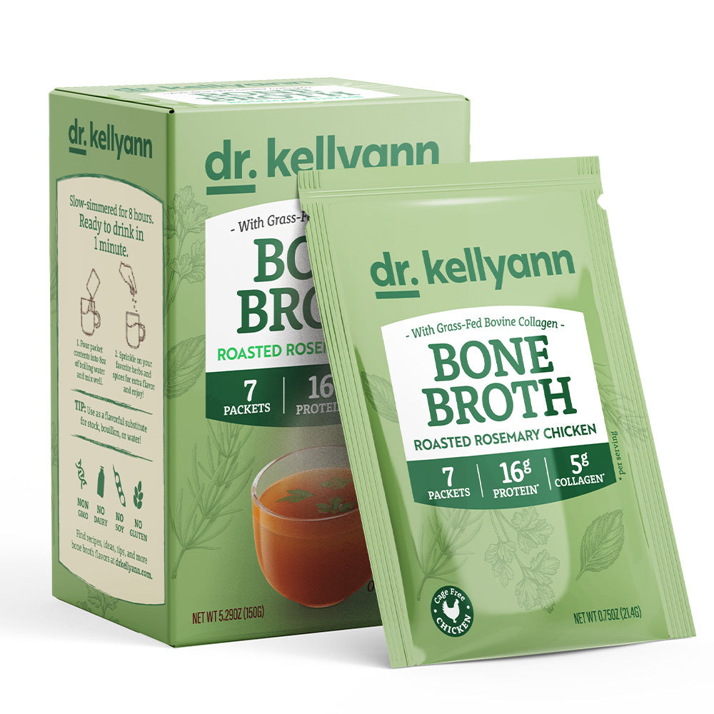 Dr. Kellyann’s Roasted Rosemary Chicken Bone Broth is the perfect blend of rosemary and organic vegetables with all the savory goodness. It yields marvelous flavor in your mug and in your kitchen. Lightly floral and delightfully aromatic, it’s one of my favorite herbs!